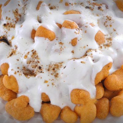 Dahi Bhoondi is a delicious mixture of fried chickpea balls in a rich and creamy 100% natural set yoghurt. Excellent.