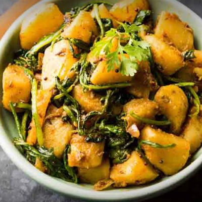Aloo Palak is freshly prepared pureed spinach with deliciously soft potatoes in a delightful traditional Punjabi curry sauce.