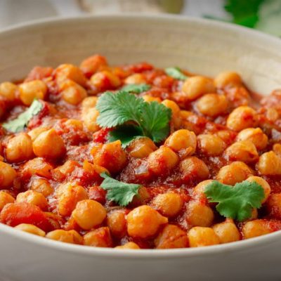We present a very popular traditional Punjabi chickpeas in a rich and delicious freshly cooked tomato sauce starter.