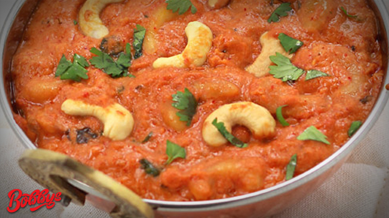 Kaju Gobi are delicious roasted cashew-nuts infused in a traditional curry sauce with locally sourced fresh cauliflower.